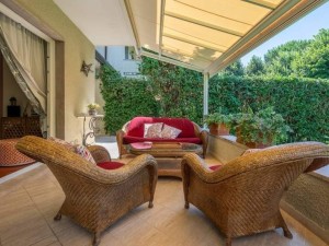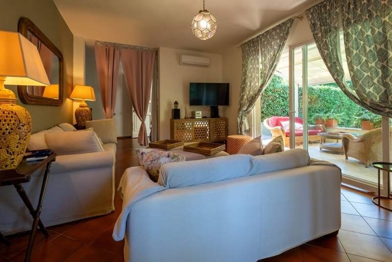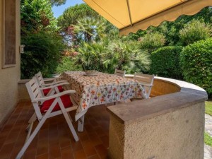 villa completely renovated and furnished with living room with large veranda, dining room, kitchen, with veranda, guest bathroom, upstairs 3 bedrooms, 3 bathrooms, utility room, balconies, tavern with laundry, and bedroom, garden