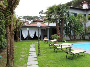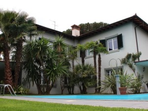 A Forte dei Marmi a 100 mt. dal mare in via silenziosa e tranquilla grande villa con piscina composta da due soggiornoi,due cucine,8 camere,7 bagni ideale per due famiglie,disponibile per affitto
